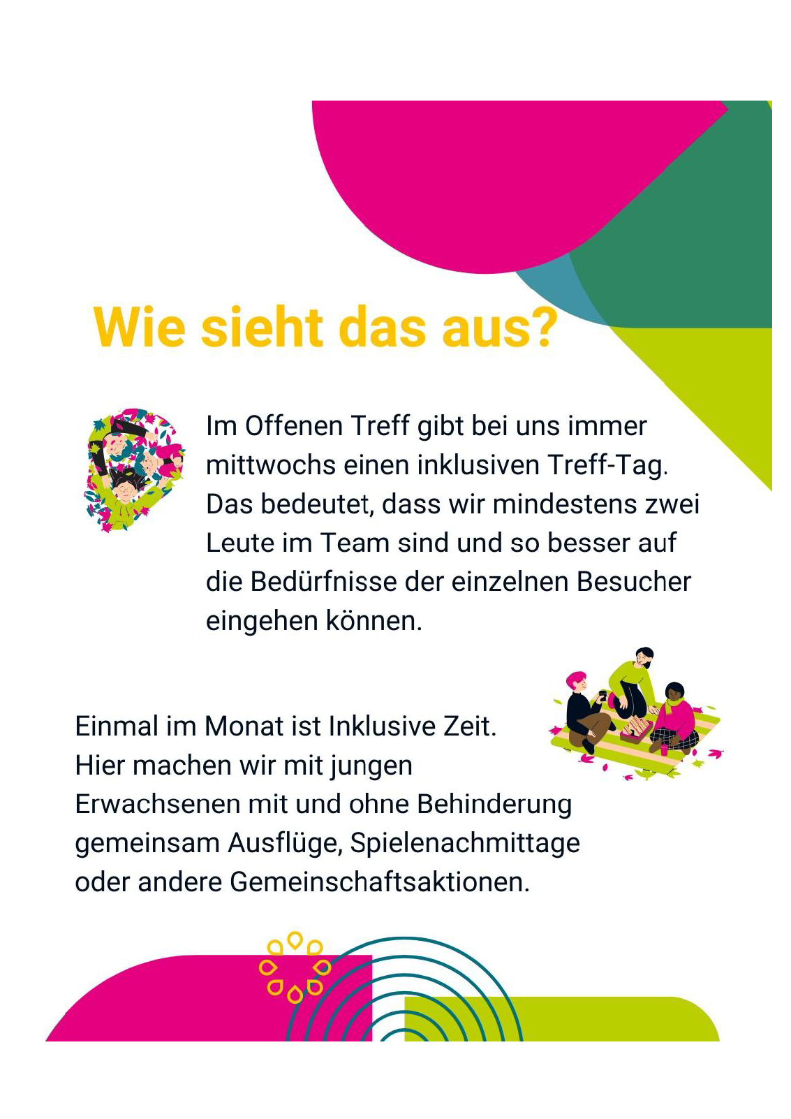 Dazu schaffen wir Angebote und Begegnungen für Alle mit oder ohne Behinderung.